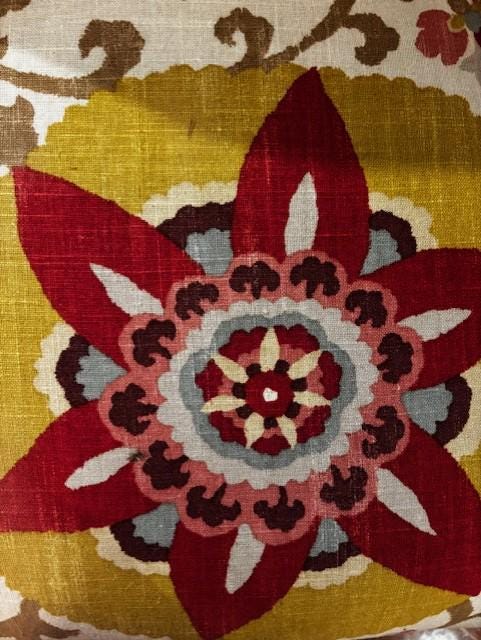Upholstered in a contemporary Mexican print fabric, each chair showcases rich patterning and high‑quality craftsmanship that immediately draws the eye. The bold yet refined textile pairs beautifully with both eclectic interiors and boho‑chic décor, allowing the chairs to blend seamlessly while still standing out as remarkable focal pieces.